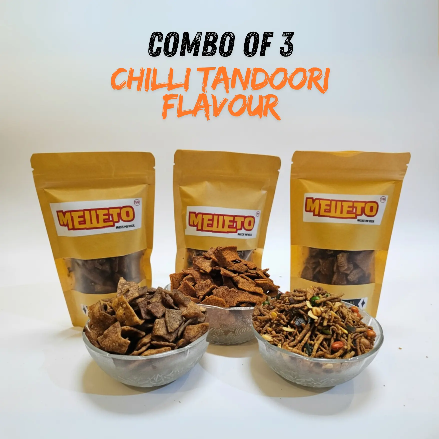 Chilli Tandoori Sizzling Korean Combo – Chips, Nimki & Mixture (3×100g)”